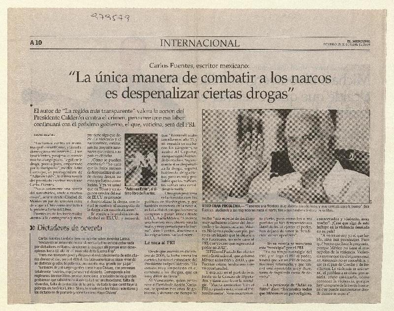 "La única manera de combatir a los narcos es despenalizar ciertas drogas" (entrevista) [artículo] Gaspar Ramírez.