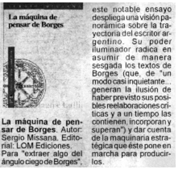 Autores chilenos - Máquina de pensar de Borges - Missana, Sergio - Autores argentinos - Borges, Jorge Luis