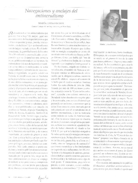 Navegaciones y anclajes del antinerudismo [artículo] María Luisa Fischer.