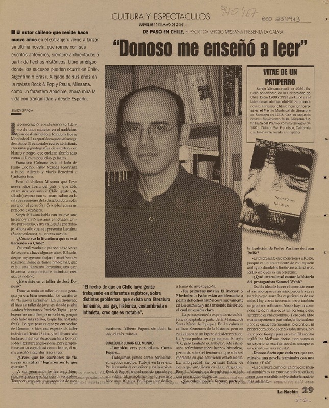 "Donoso me enseñó a leer" (entrevista) [artículo]Sergio Missana.