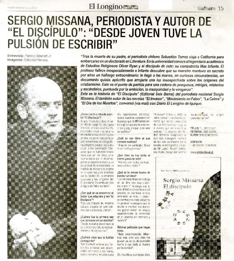 Sergio Missana, periodista y autor de "El Discípulo": "desde joven tuve la pulsión de escribir" [artículo] Patricio Sesnich Jr.