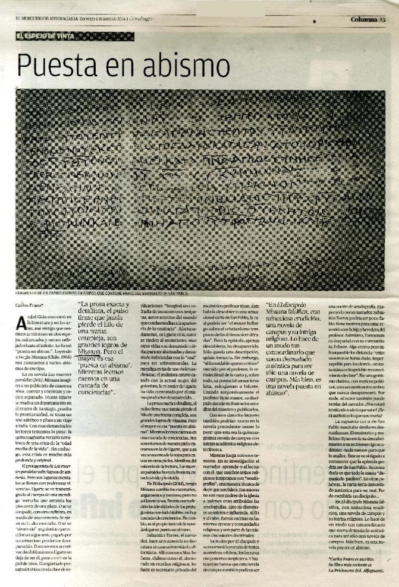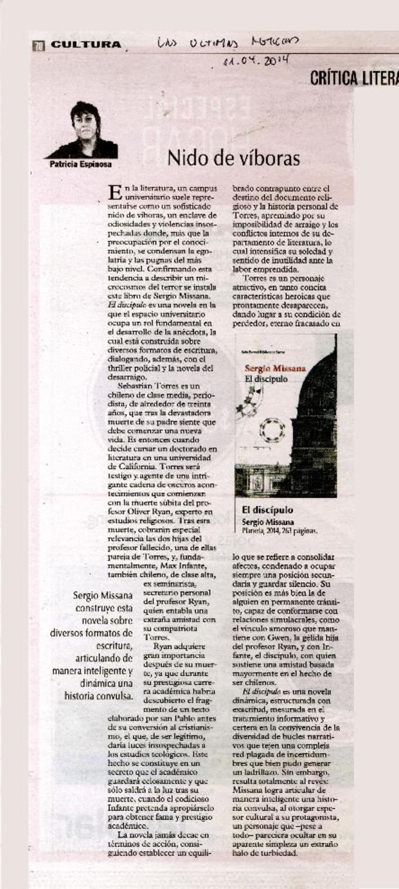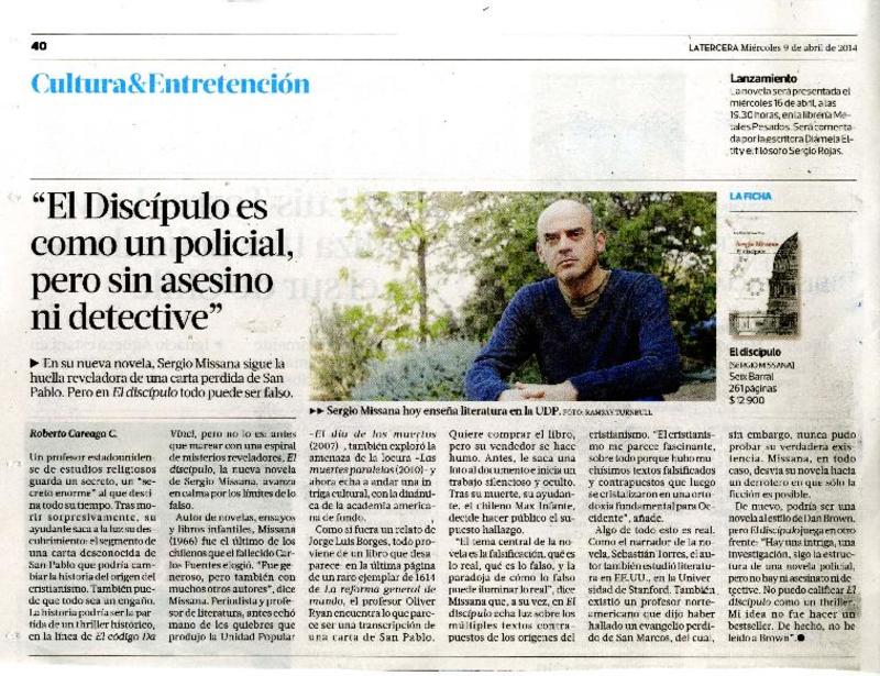 "El Discípulo es como un policial, pero sin asesino ni detective" [artículo] Roberto Careaga C.