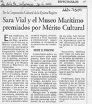 Sara Vial y el Museo Marítimo premiados por Mérito Cultural [artículo].