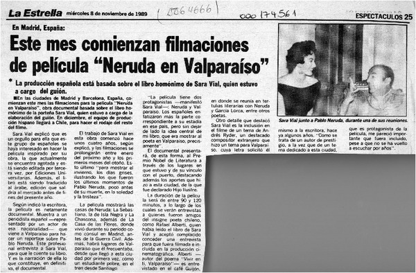 Vial, Sara - Neruda, Pablo - Autores chilenos - Neruda en Valparaiso