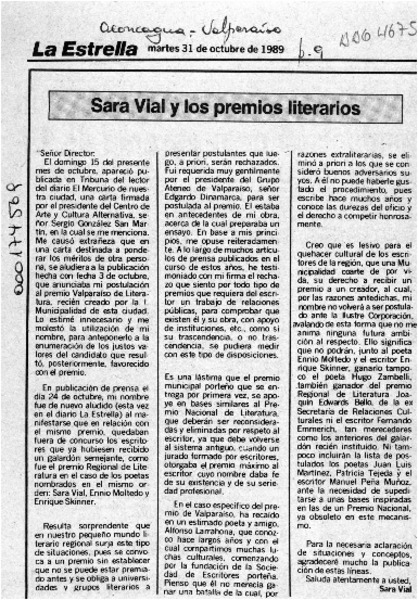 Sara Vial y los premios literarios [artículo] Sara Vial.