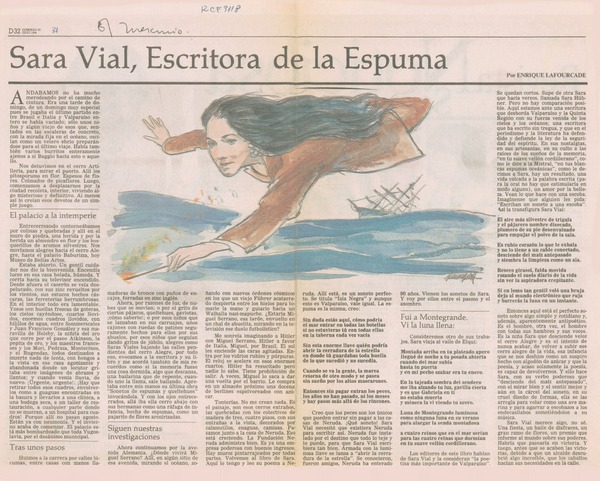 Sara Vial, escritora de la espuma [artículo] Enrique Lafourcade.