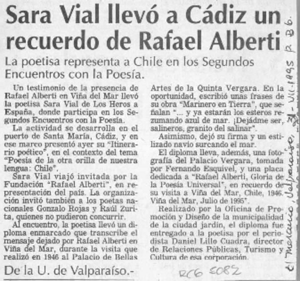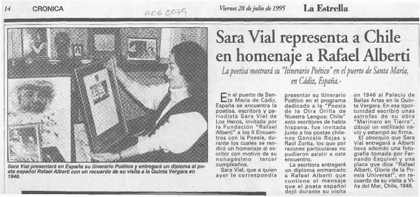 Sara Vial representa a Chile en homenaje a Rafael Alberti [artículo].