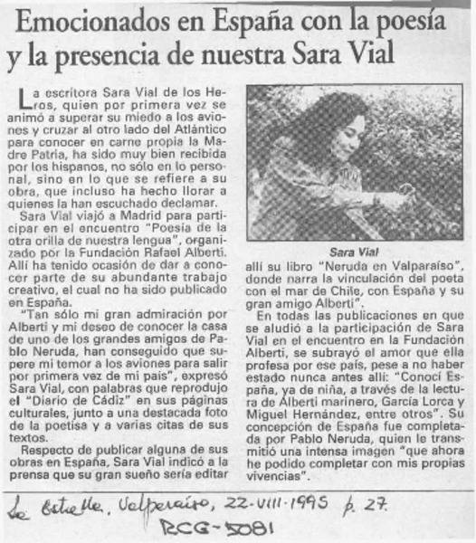 Emocionados en España con la poesía y la presencia de nuestra Sara Vial [artículo].