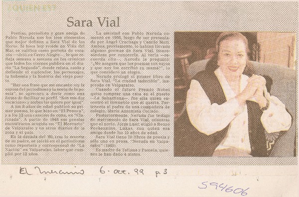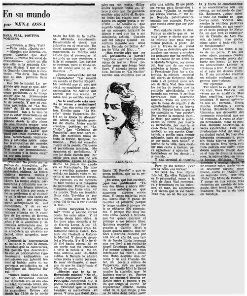 Sara Vial, poetisa porteña [entrevistas] : [artículo] Nena Ossa.