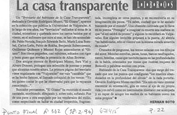 La Casa transparente [artículo] Hernán Soto.