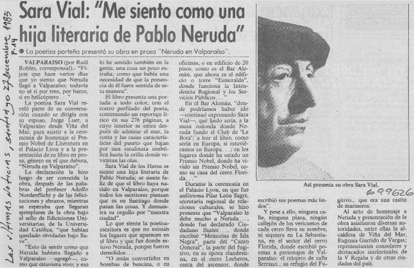 Sara Vial, "me siento como una hija literaria de Pablo Neruda". [artículo]