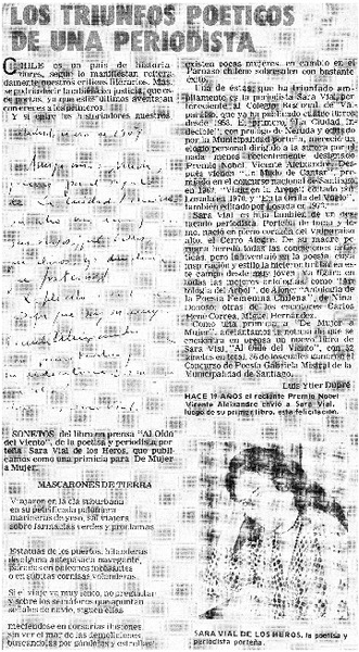 Sara Vial obtiene premio en poesía. [artículo]