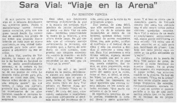 Sara Vial: "viaje en la arena" [artículo] Edmundo Concha.