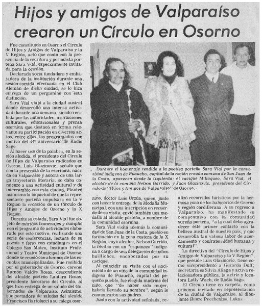 Hijos y amigos de Valparaíso crearon un círculo en Osorno. [artículo]