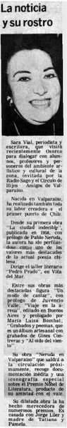 Lanzan libro "Neruda en Valparaíso" de la autora Sara Vial. [artículo]