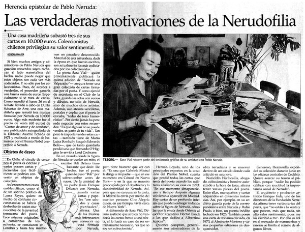 Las verdaderas motivaciones de la Nerudofilia [artículo] Gonzalo Maier.