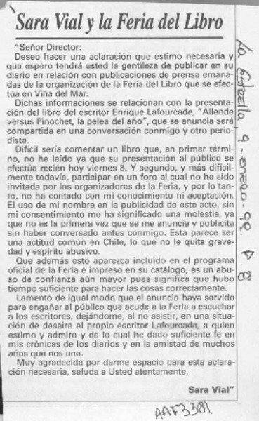 Sara Vial y la Feria del Libro [artículo] Sara Vial.