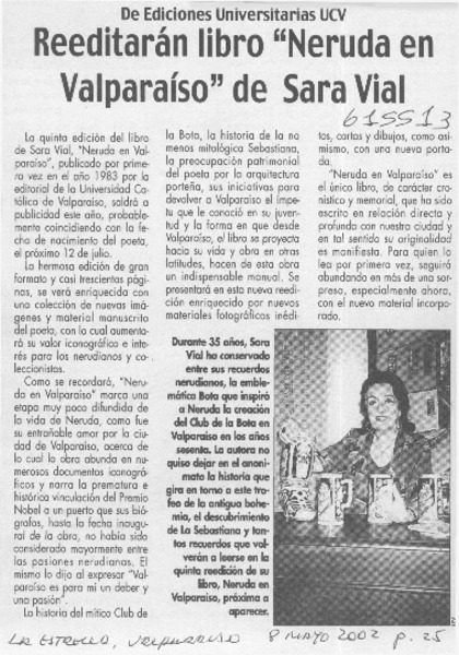 Reeditan libro "Neruda en Valparaíso" de Sara Vial [artículo]