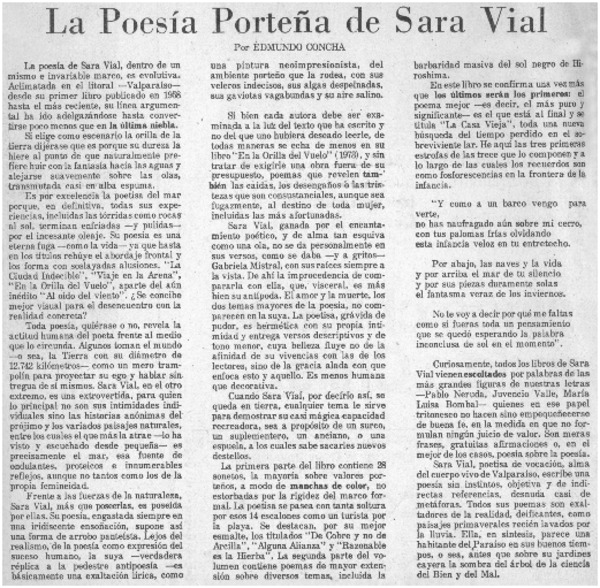 La poesía porteña de Sara Vial [artículo] Por Edmundo Concha.
