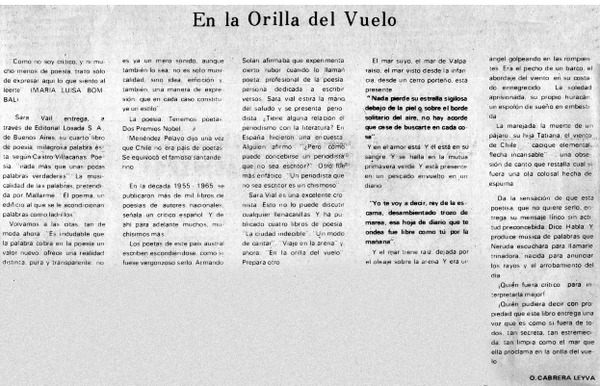 En la orilla del vuelo [artículo] O. Cabrera Leyva.