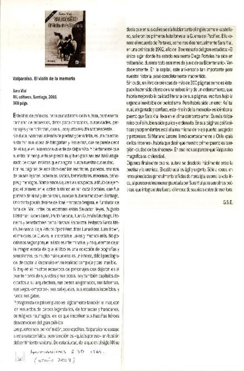 Valparaíso, el violín de la memoria [artículo] G. S. E.