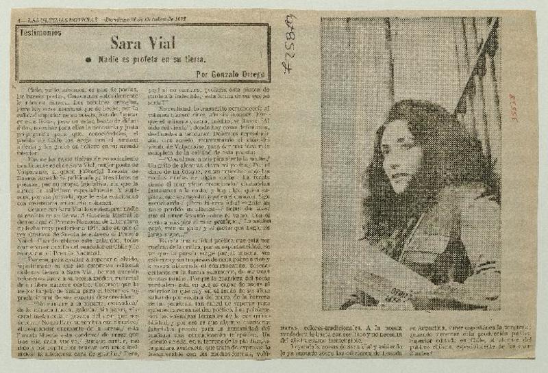 Sara Vial, poetisa y periodista [artículo] Armando León Pacheco.
