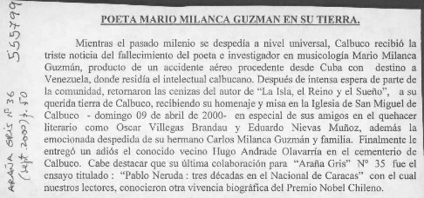 Poeta Mario Milanca Guzmán en su tierra [artículo]