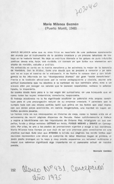 Mario Milanca Guzmán [artículo] Marcelo Coddou.