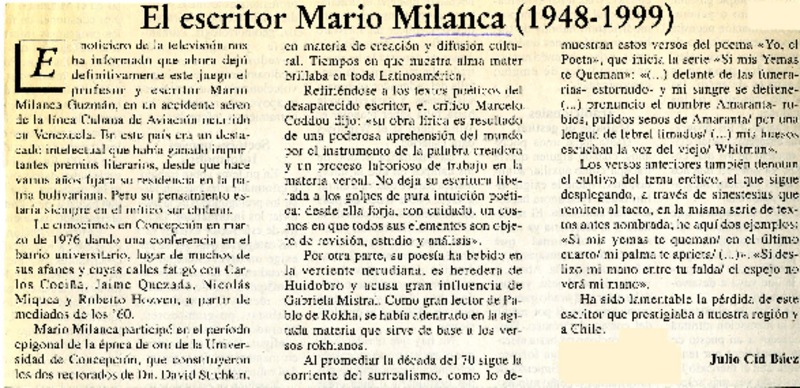 El escritor Mario Milanca (1948-1999) [artículo] Julio Cid Báez