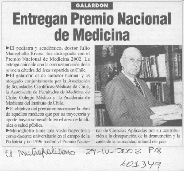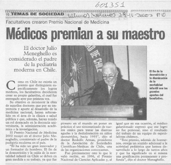 Julio Meneghello maestro de la pediatría chilena [artículo] Marcelo V. Maturana.