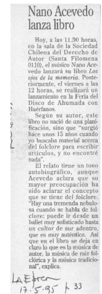 La memoria de Nano Acevedo [artículo] Fernando Quilodrán.