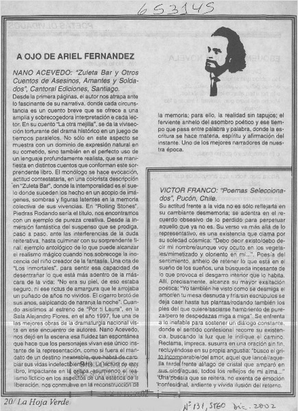 Autores chilenos - Acevedo, Nano - Zuleta Bar y otros cuentos de asesinos, amantes y soldados - Poemas seleccionados - Franco, Víctor
