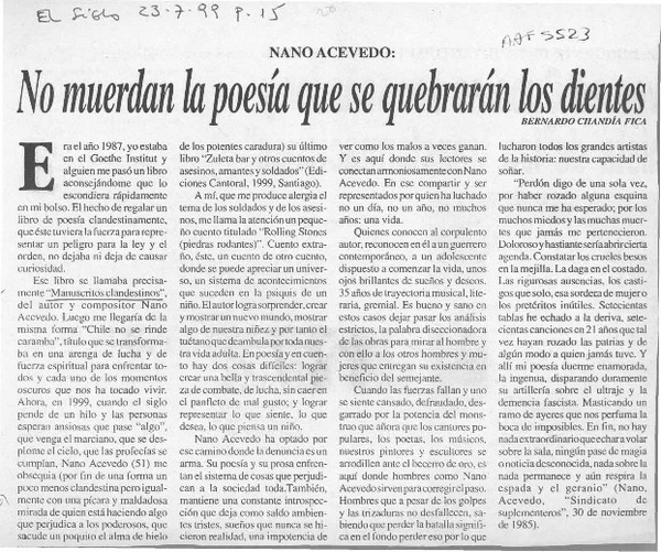 No muerdan la poesía que se quebrarán los dientes [artículo] Bernardo Chandía Fica.