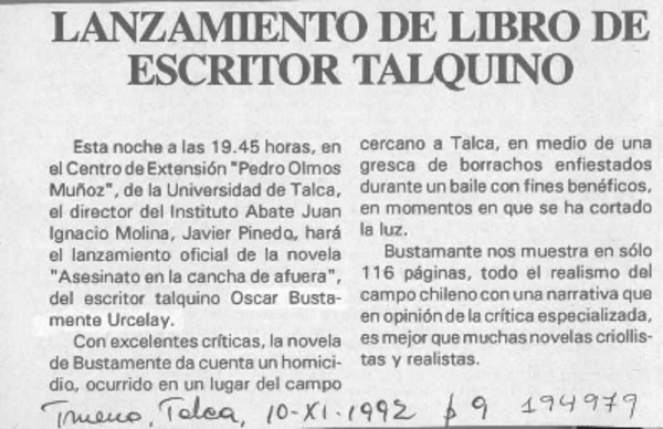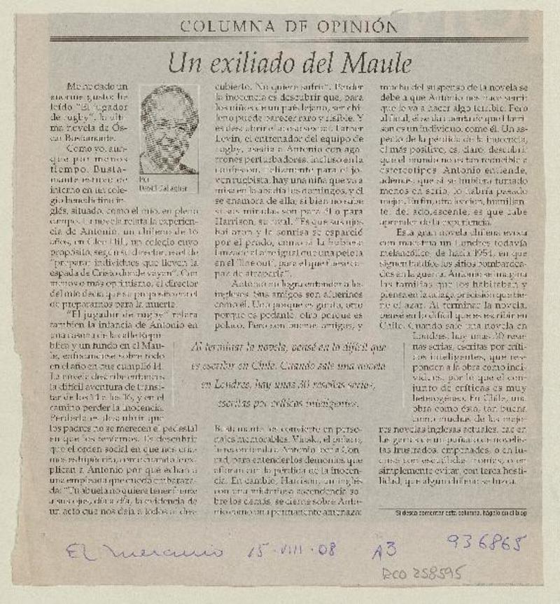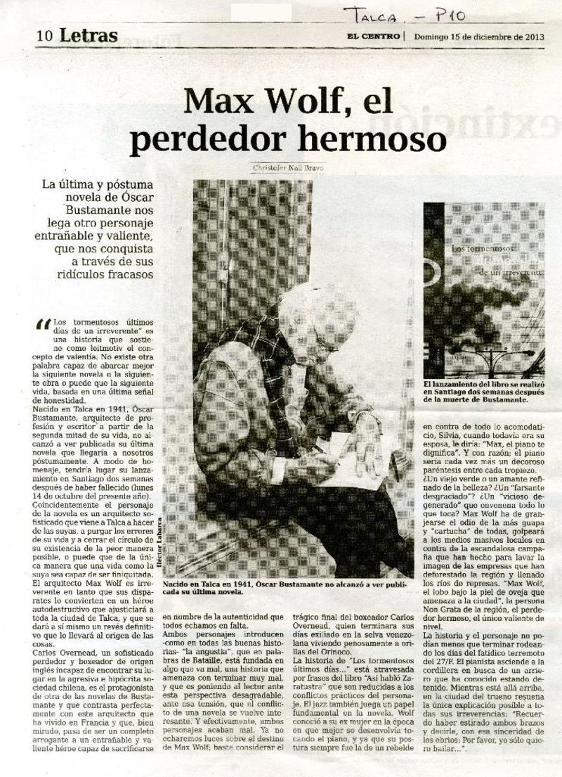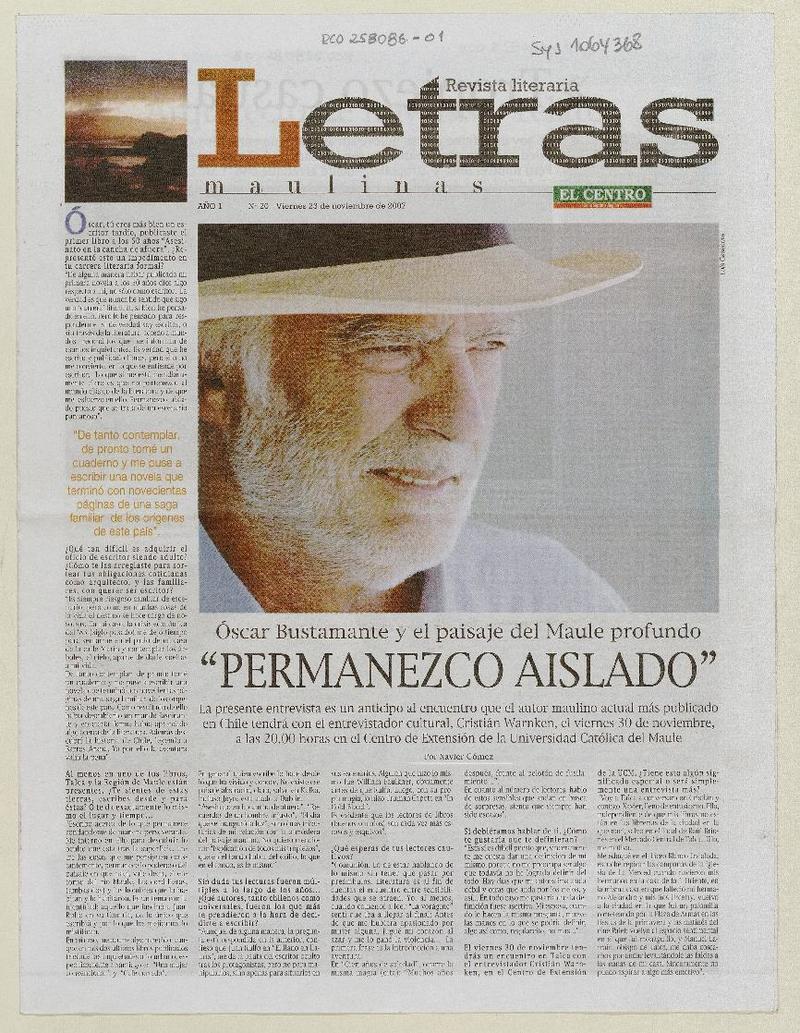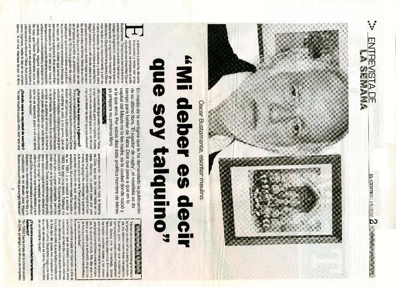 Oscar Bustamante, escritor maulino: "Mi deber es decir que soy talquino" (entrevista) [artículo]María José Cabezas.