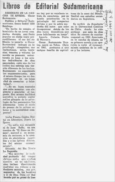 Autores chilenos - Entrevistas - Bustamante, Oscar - Asesinato en la cancha de afuera