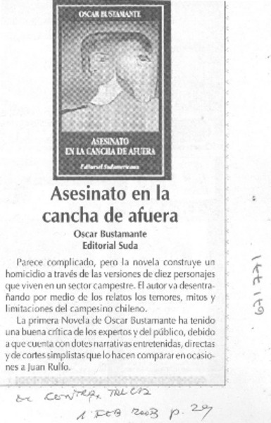Autores chilenos - Asesinato en la cancha de afuera - Bustamante, Oscar