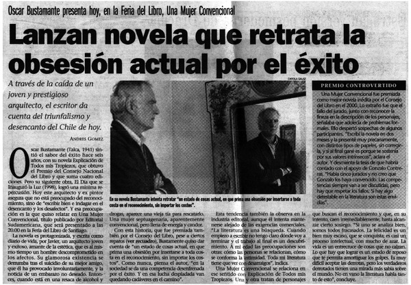 Lanzan novela que retrata la obsesión actual por el éxito [artículo] Andrés Gómez.
