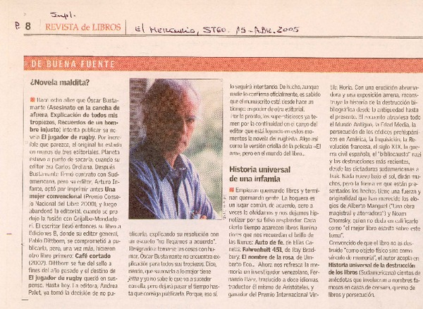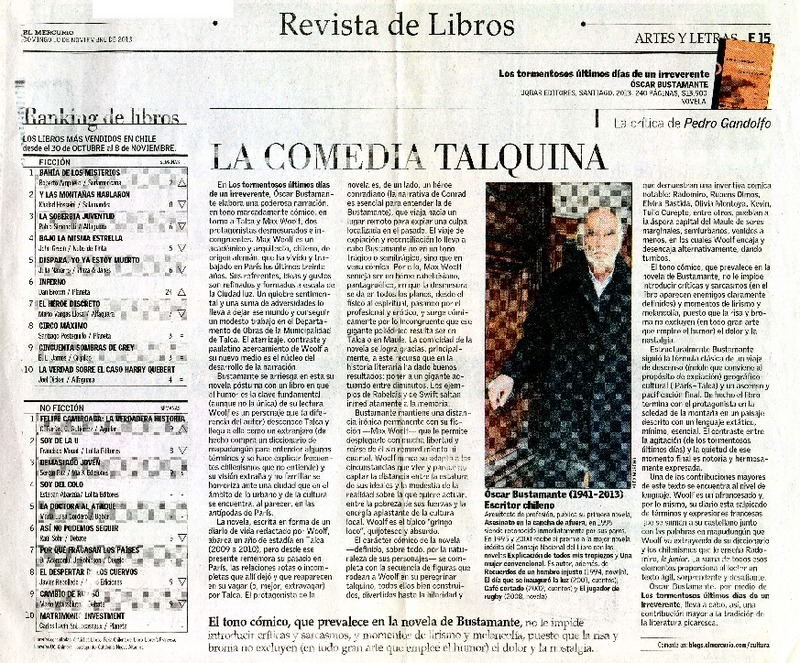 Tras seis años, Oscar Bustamante vuelve con su novela "más biográfica" [artículo]Alvaro Matus.