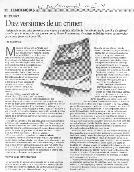 Diez versiones de un crimen [artículo] Tito Matamala.