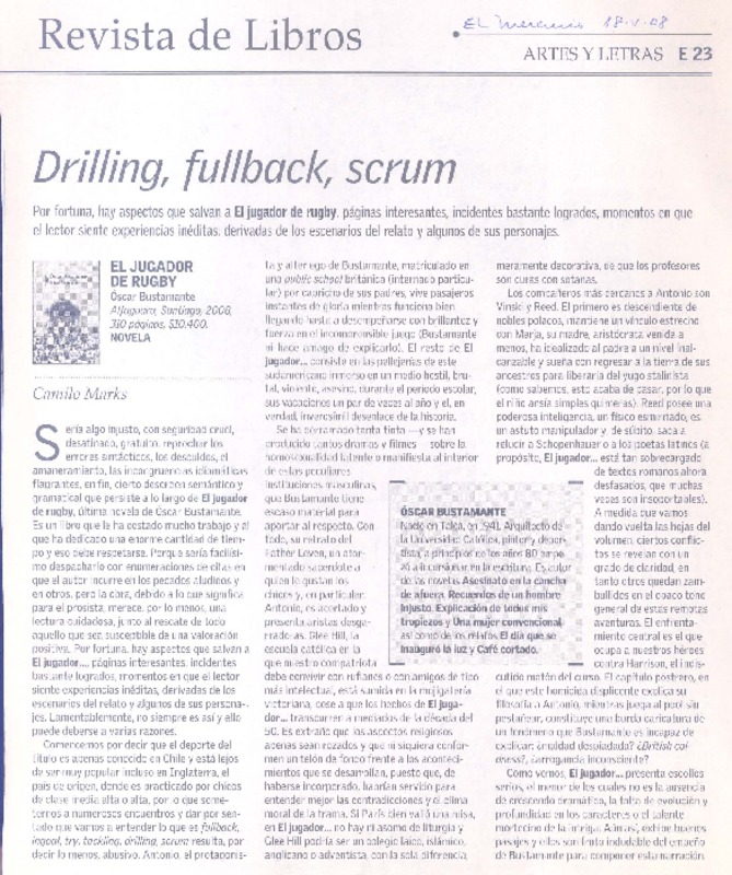 Drilling, fullback, scrum [artículo] Camilo Marks.