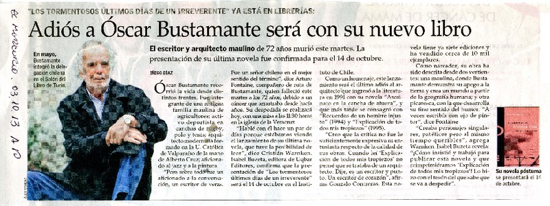 Adiós a Óscar Bustamante será con su nuevo libro [artículo]