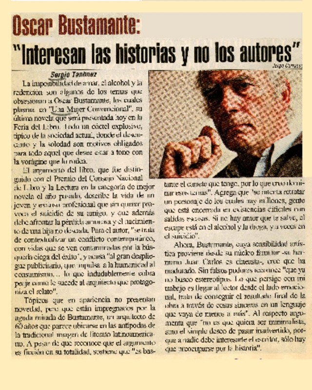 Oscar Bustamante : "Interesan las historias y no los autores" [artículo] Sergio Tanhnuz.