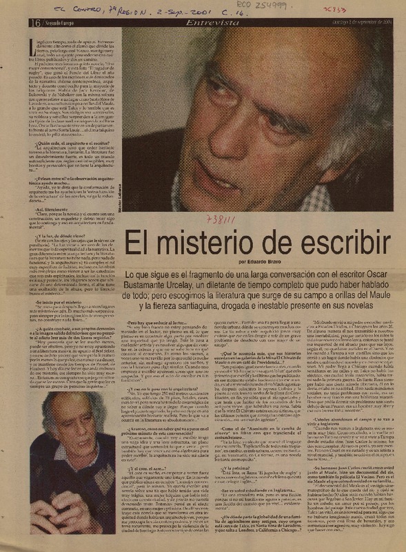El misterio de escribir : [entrevistas] [artículo] Edurado Bravo.