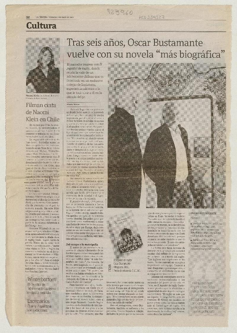 Oscar Bustamante lanzó "El jugador de de rugby" [artículo]María José Cabezas.