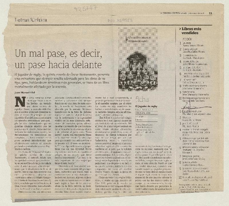 Un mal pase, es decir, un pase hacia delante [artículo]Juan Manuel Vial.
