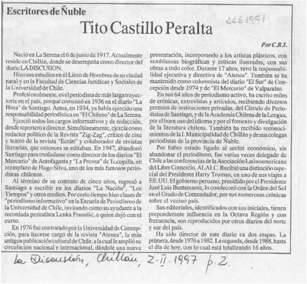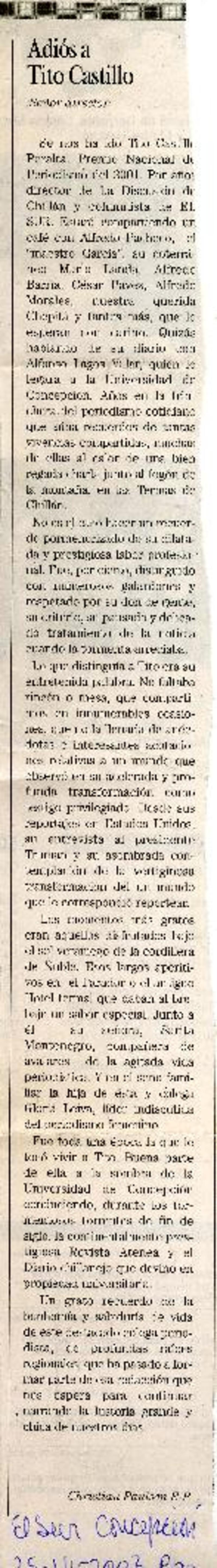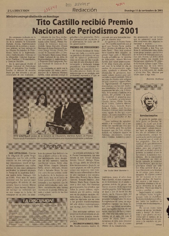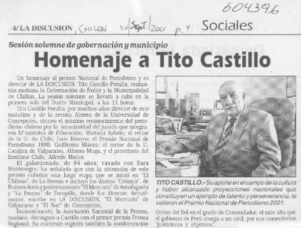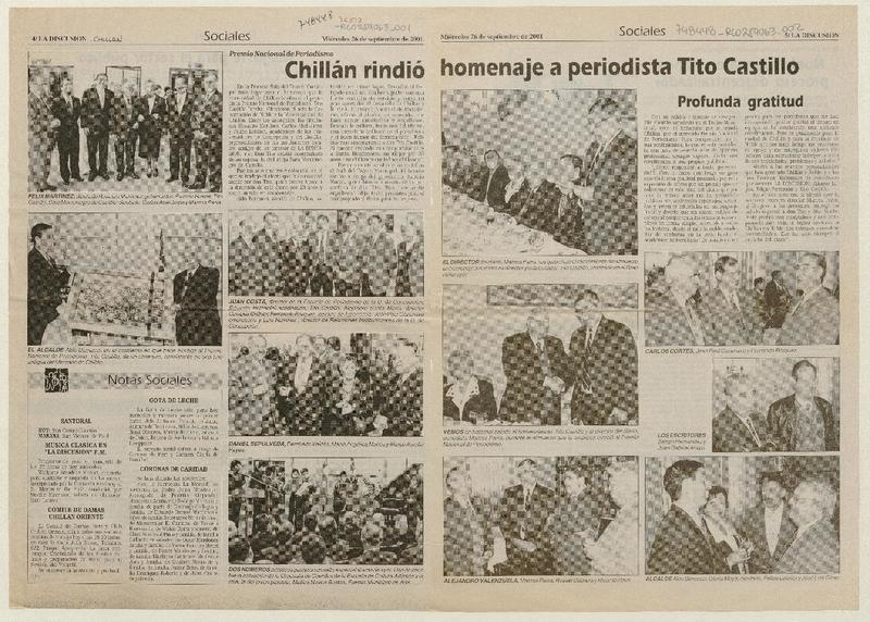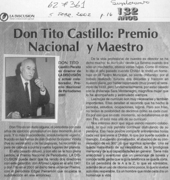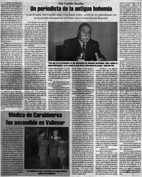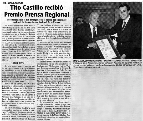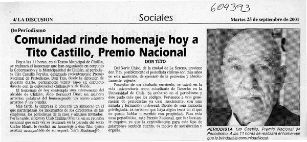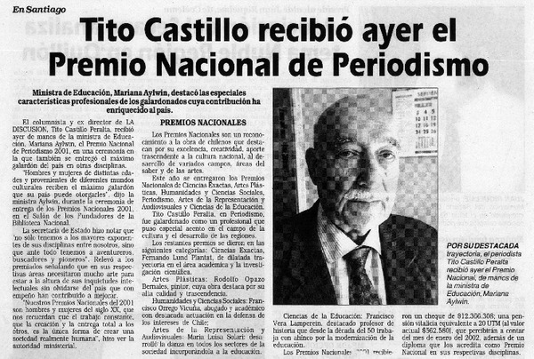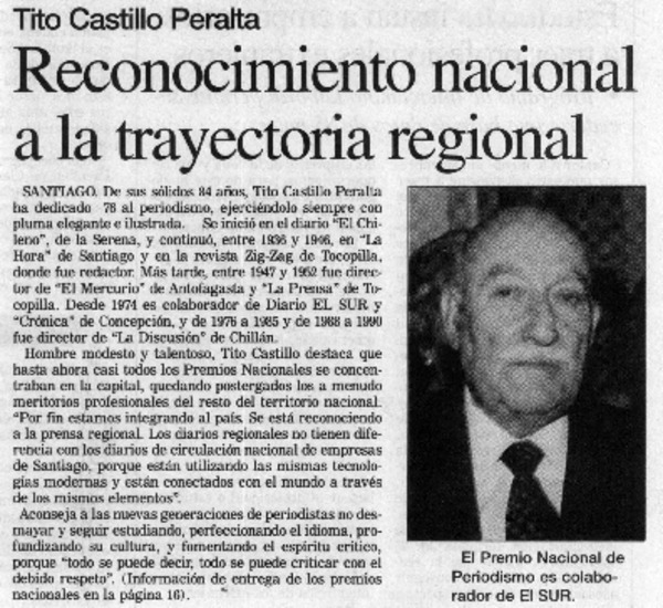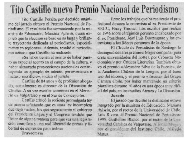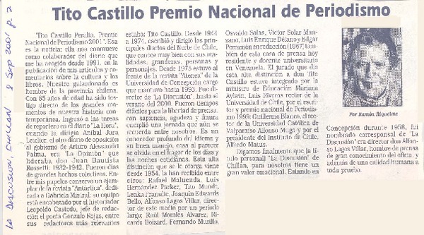 Tito Castillo de Chillán, Premio Nacional de Periodismo 2001 [artículo]