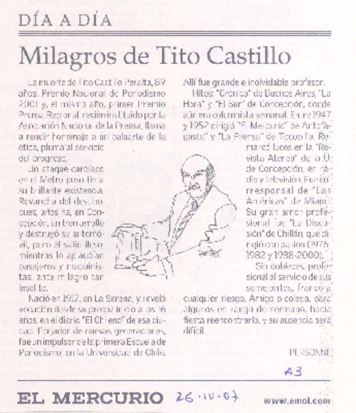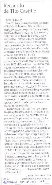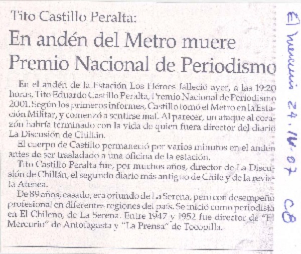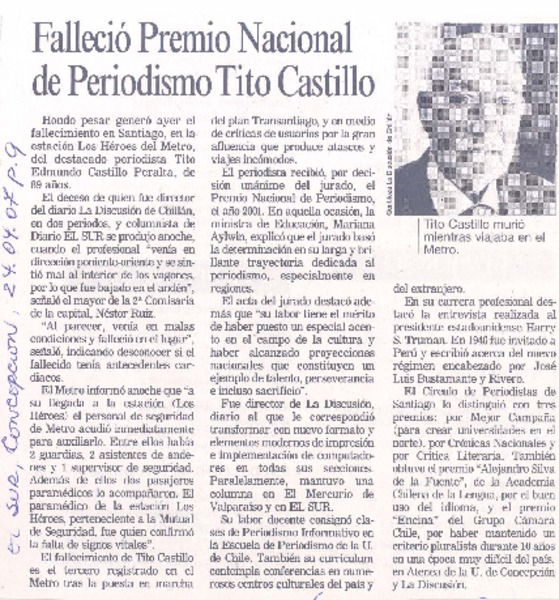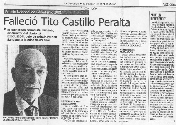 Falleció Premio Nacional de Periodismo Tito Castillo [artículo].