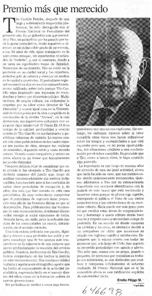 Tito Castillo Premio Nacional de Periodismo. [artículo]