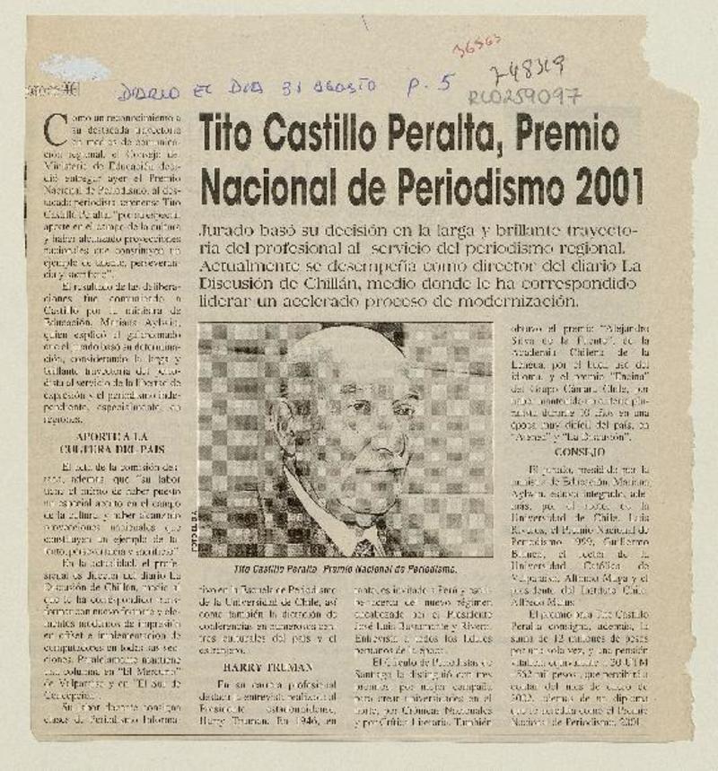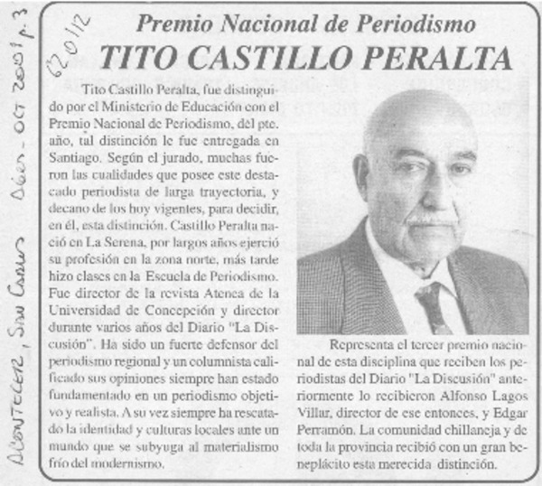 Tito Castillo Peralta es Premio Nacional de Periodismo 2001. [artículo]