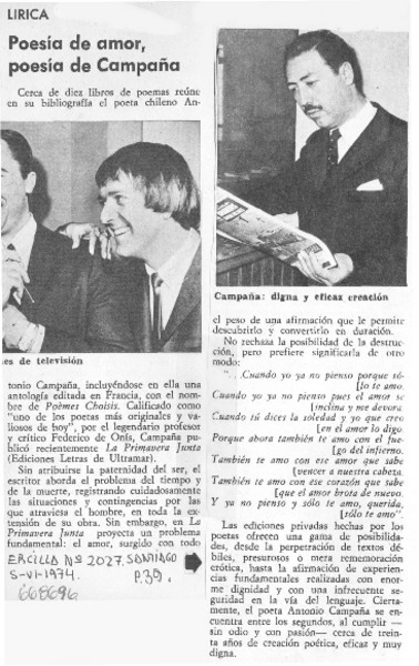Poesía de Antonio Campaña [artículo] Luis Merino Reyes.